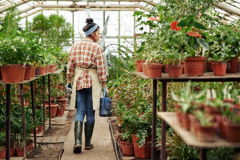 Женщина, несущая поливную банку