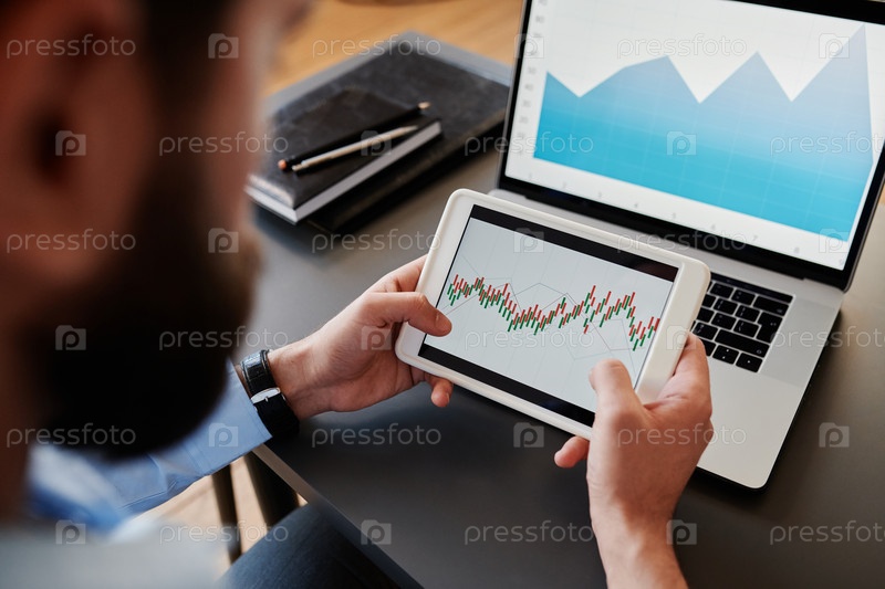 Непризнанный мужчина смотрит на графики