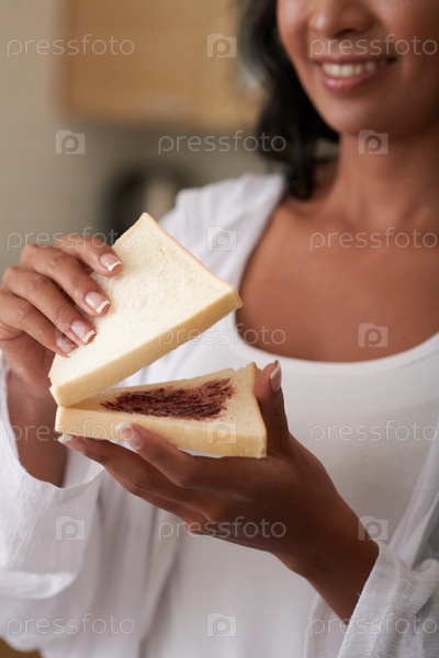 Женщина, делающая бутерброд на завтрак