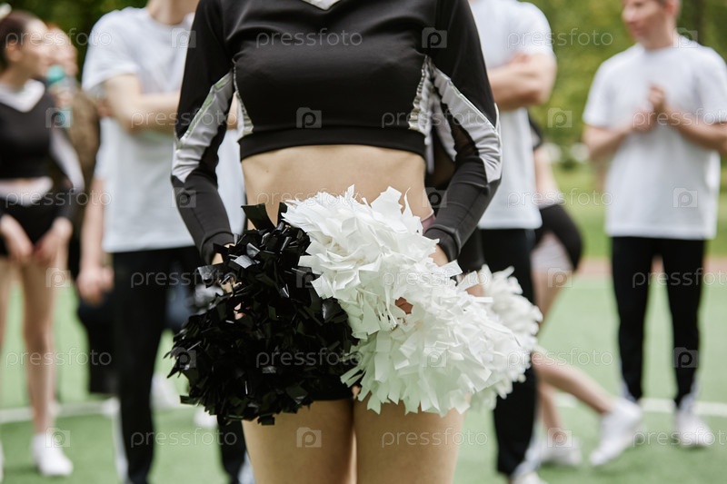 Девушка-ободряющая танцует с помпом
