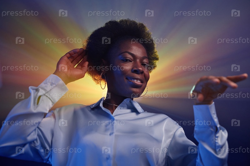 Ретро черная девушка, танцующая в светофоре 'Halo' и дискотеке 80-х годов