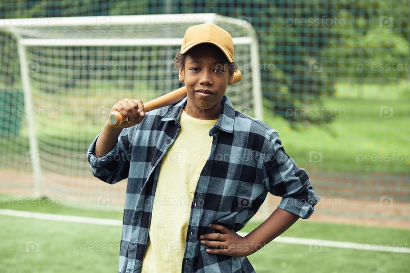 Африканский мальчик играет в бейсбол на свежем воздухе