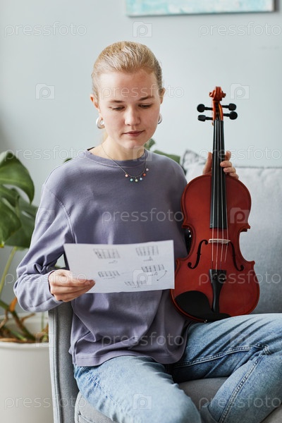 Молодая женщина сочиняет музыку для скрипки