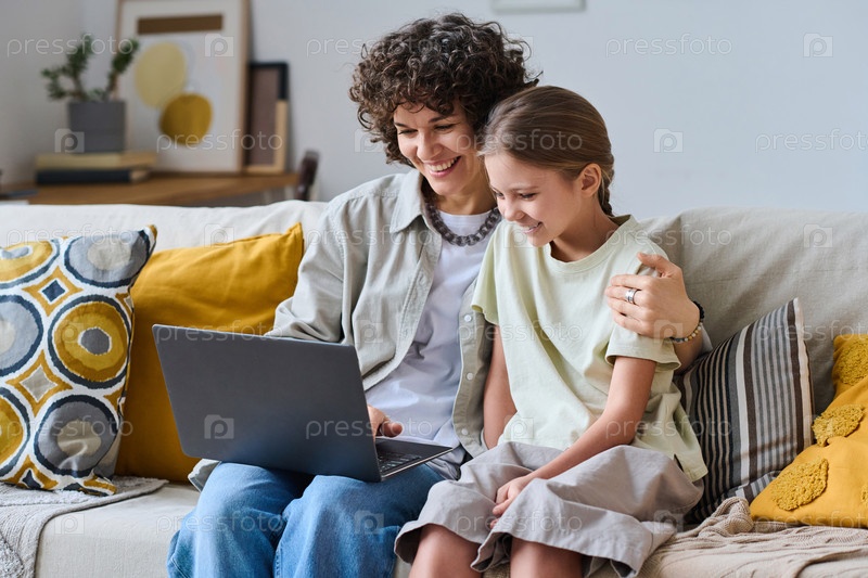 Женщина и девушка ведут видеозвонки на ноутбуке
