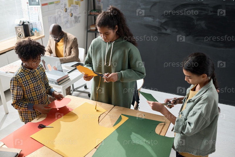 Школьные дети делают ремесла в школе