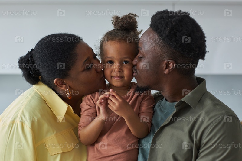 Родители целуют свою маленькую дочь
