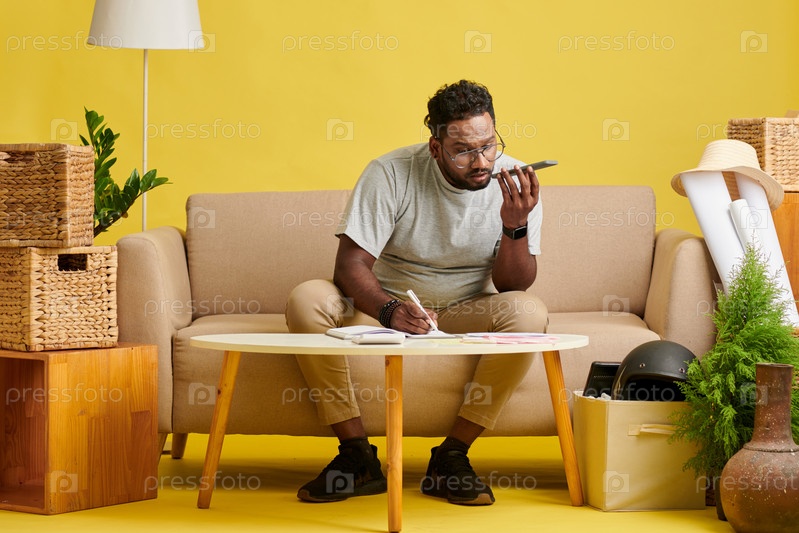 Бизнесмен, записывающий голосовое сообщение