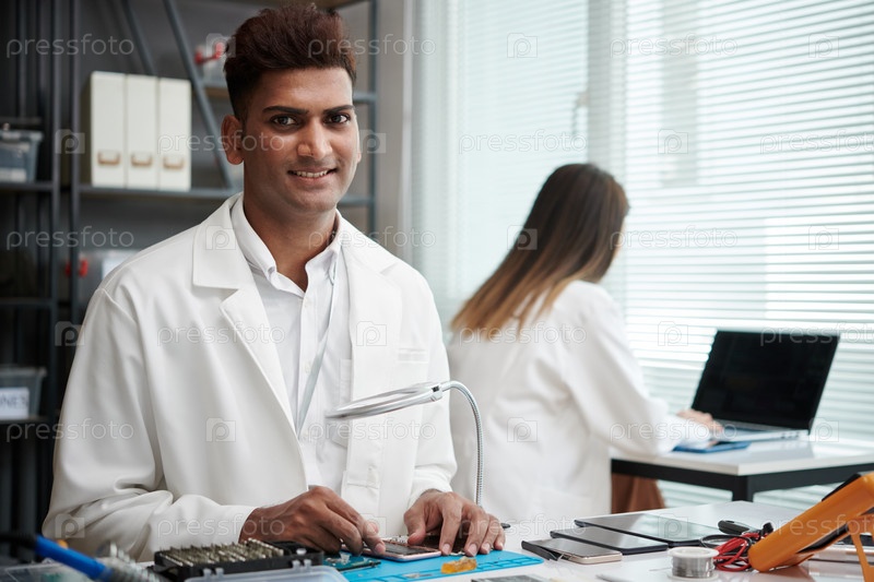 Техник, ремонтирующий сломанный смартфон
