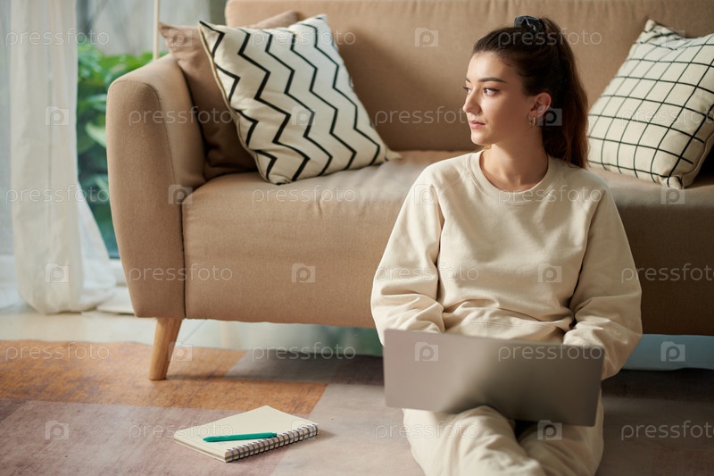Молодая женщина, работающая из дома