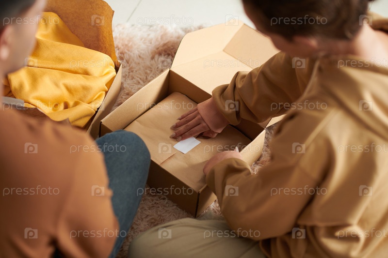 Открывающий заказ из магазина одежды Женщина
