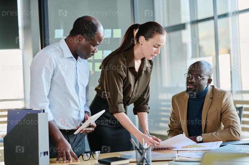 Молодая бизнес-женщина кладет бумажный документ на стол директора компании