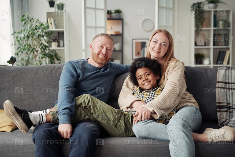 Счастливый приемный мальчик со своими родителями