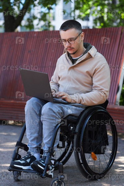 Мужчина с инвалидностью работает онлайн