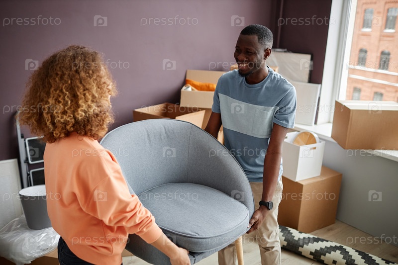 Пара приносит новую мебель в квартиру