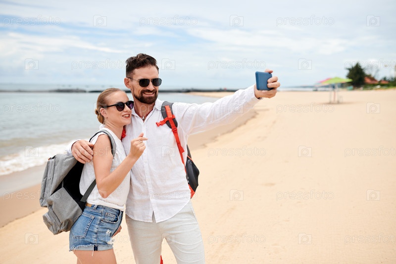Туристы, делающие селфи Счастливые