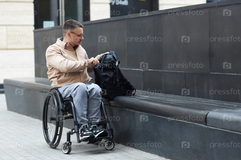 Мужчина с инвалидностью проводит время на свежем воздухе