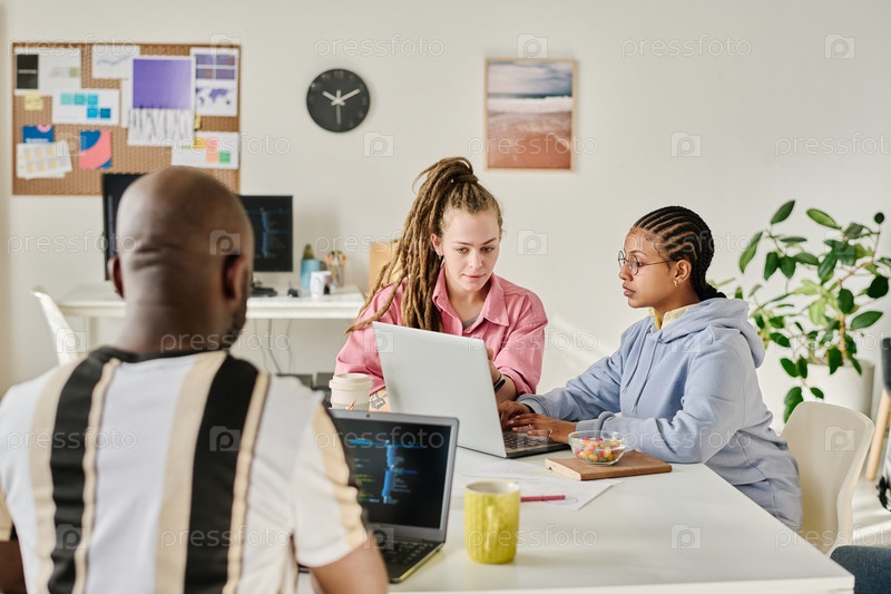 Молодые программисты работают над новым проектом в команде