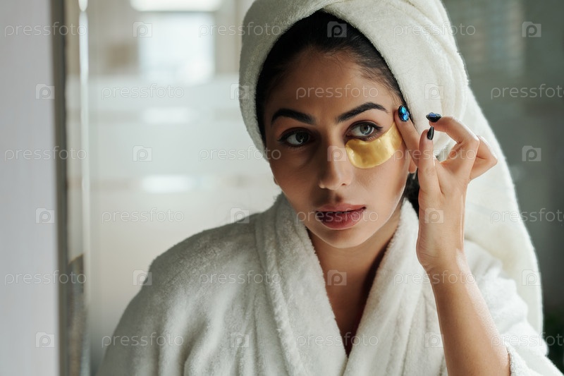 Женщина, наносящая глазные пластыри