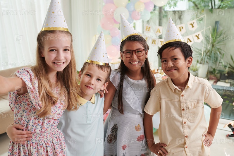 Девушка делает селфи с гостями вечеринки