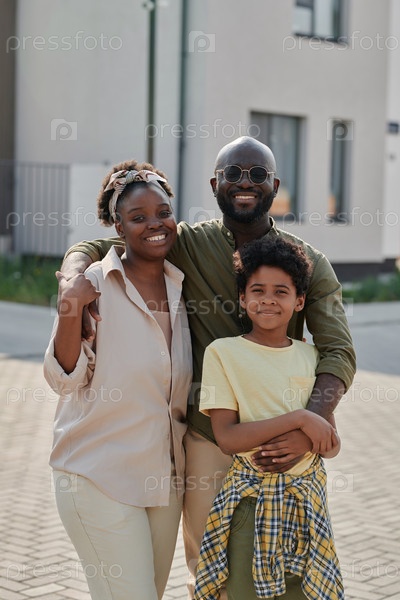 Семья из трех человек проводит время на свежем воздухе