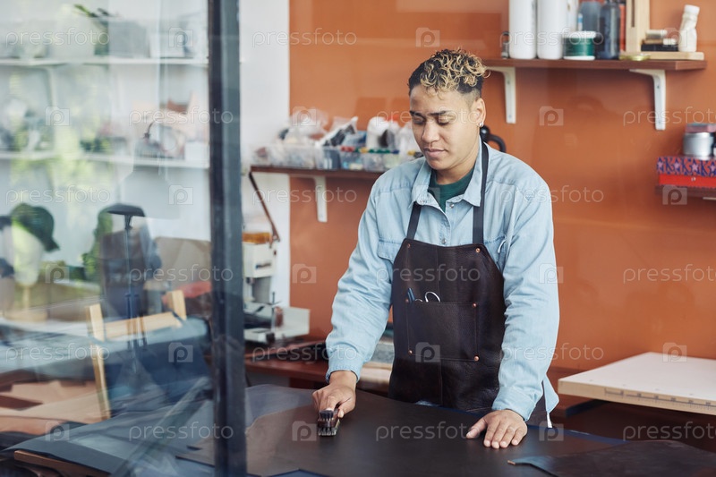 Ремесленник в кожевенном магазине