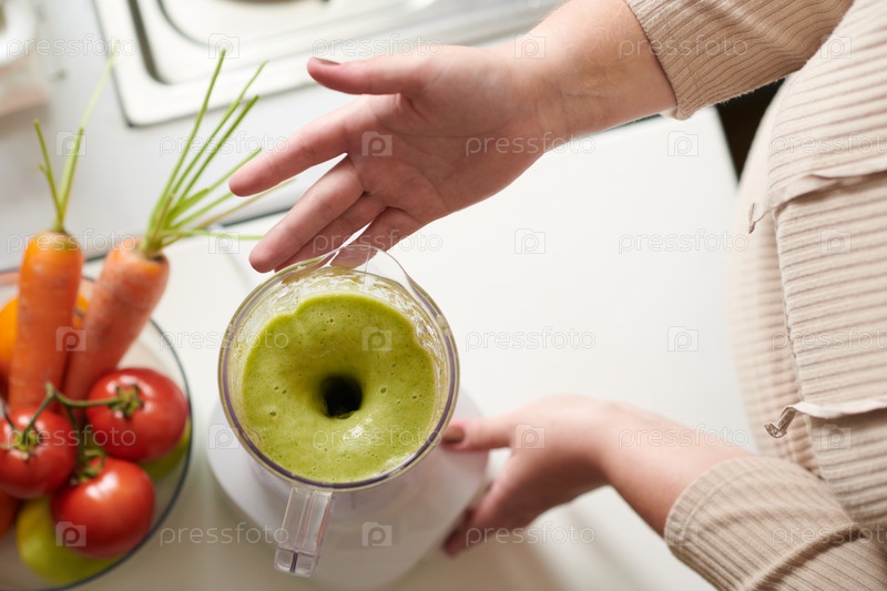 Женщина, делающая зеленый смузи