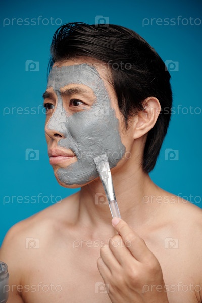 Мужчина, наносящий глиняную маску