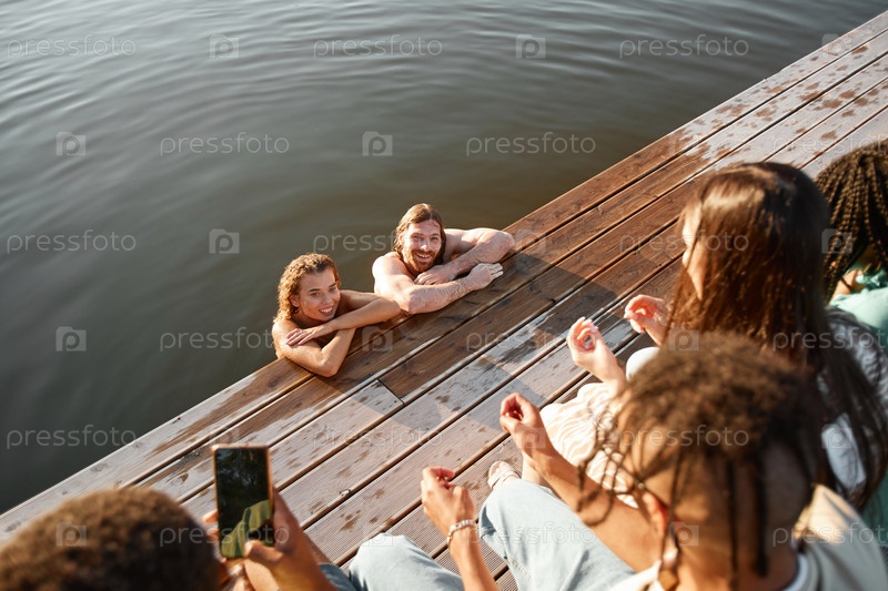 Друзья, развлекающиеся у озера