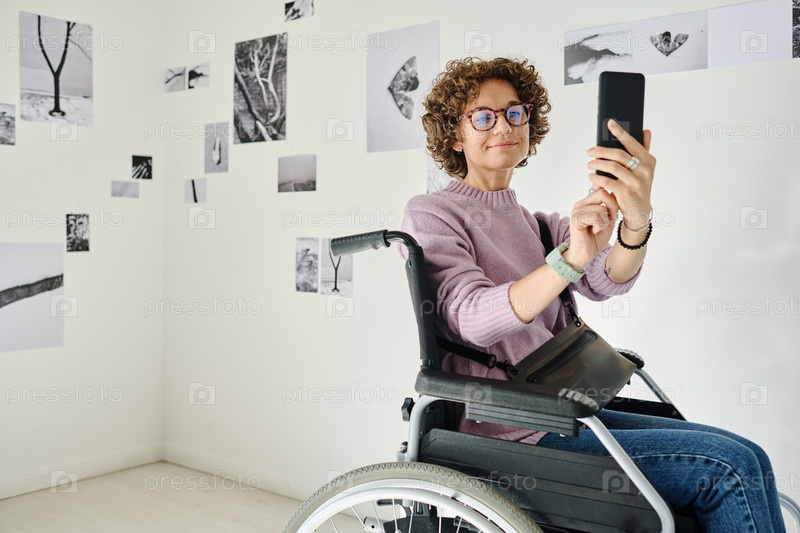 Женщина делает селфи-портрет в галерее