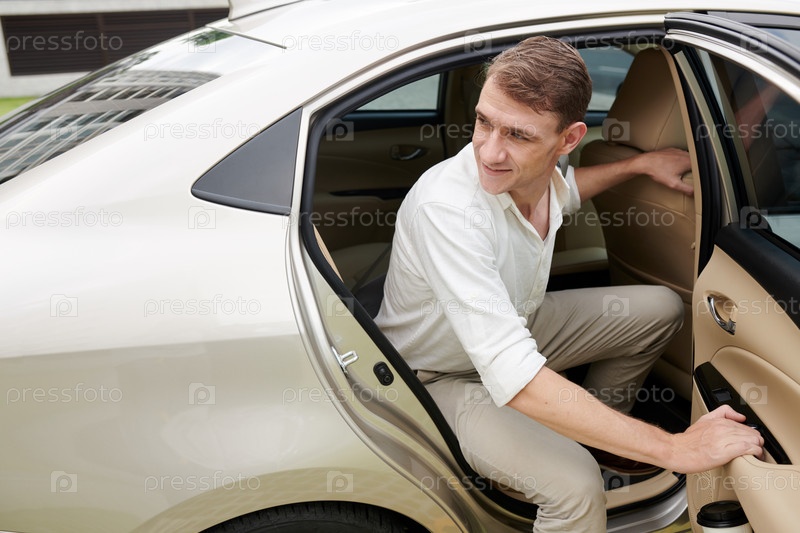 Бизнесмен открывает дверь машины