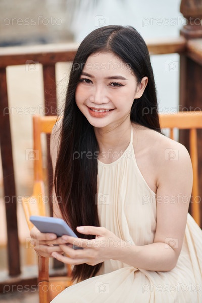 Женщина, размещающая фотографию в социальных сетях