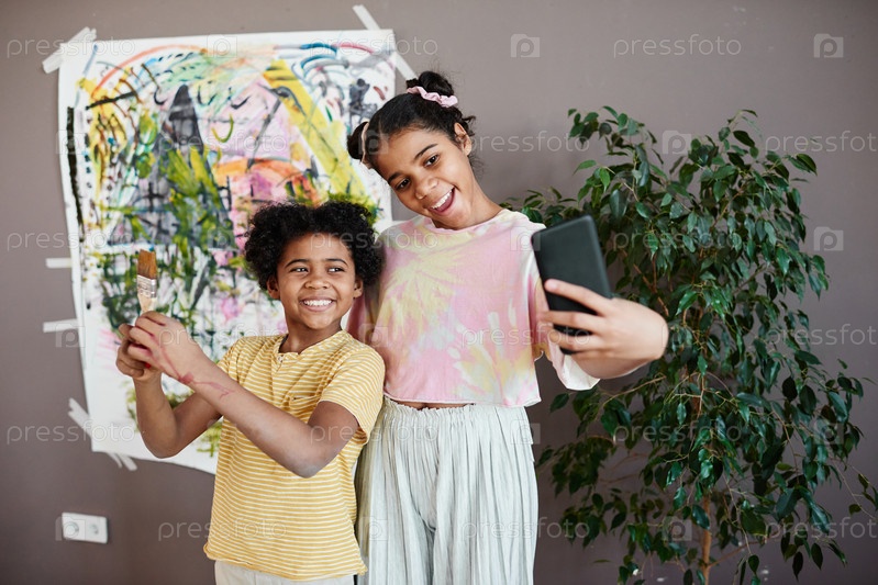 Дети делают селфи-портрет на смартфоне
