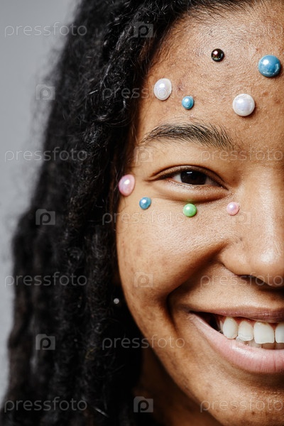Молодая чернокожая женщина улыбается без макияжа и жемчужных бусин