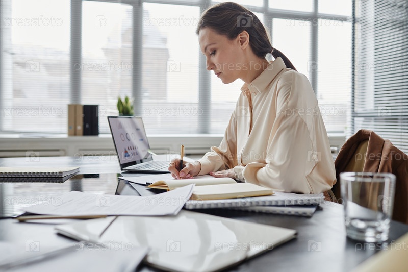 Женщина-предприниматель на рабочем месте Side View