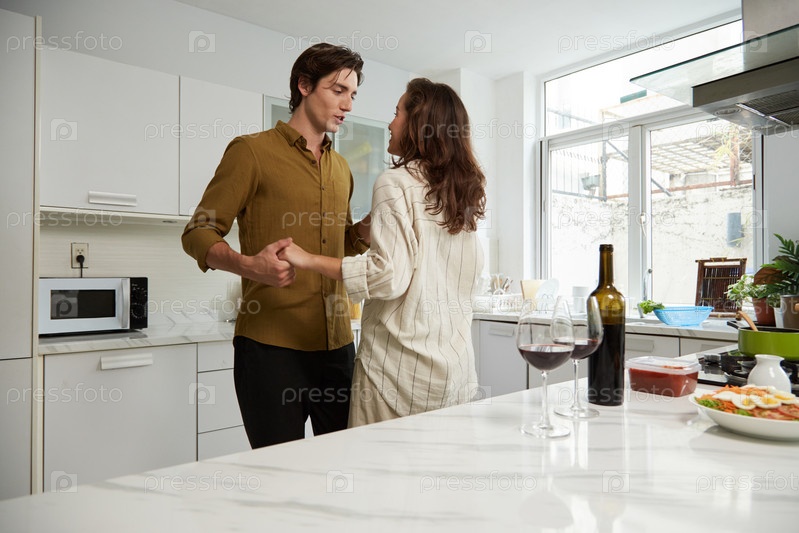 Пара танцует на кухне