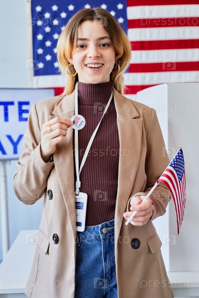 Портрет молодой американской женщины, голосующей