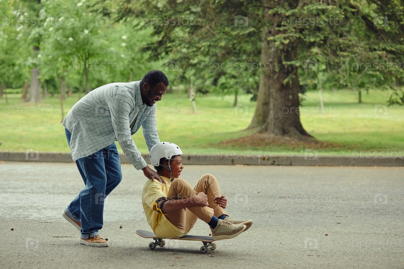 Папа развлекается со своим сыном в парке