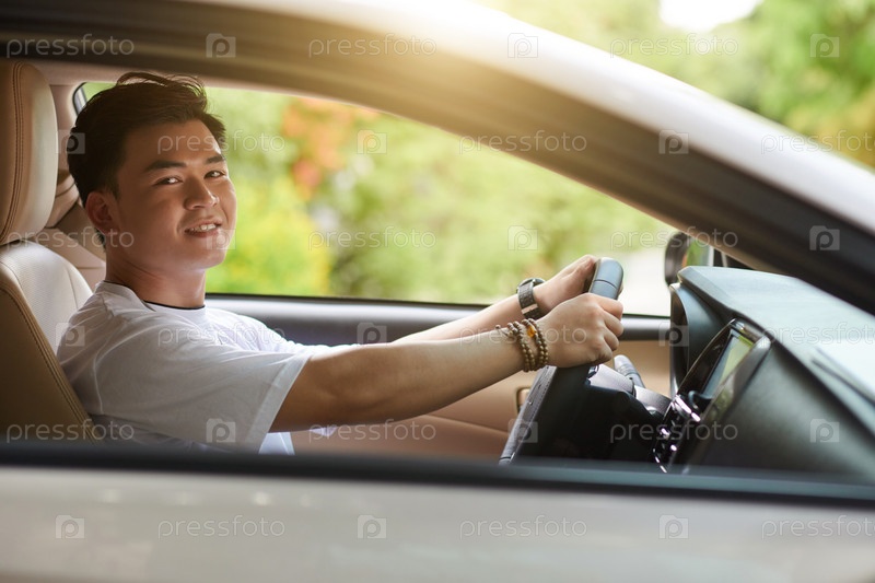 Молодой человек за рулем автомобиля
