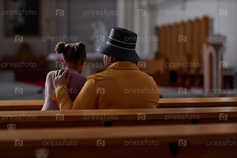 Бабушка посещает церковь со своей внучкой