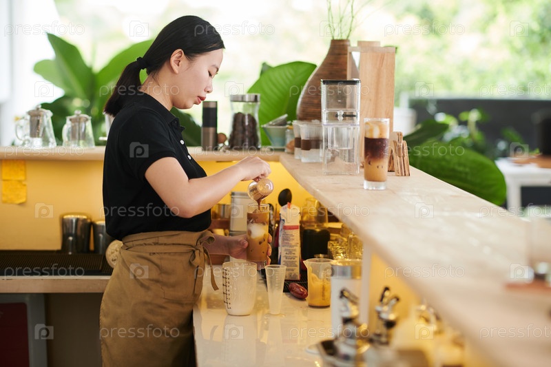 Бариста делает холодный напиток