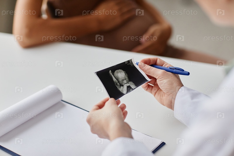 Врач изучает ультразвуковое изображение эмбриона
