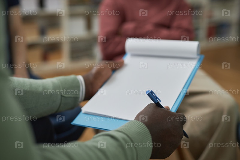 Близкий снимок психолога-мужчины, держащего пустую доску в терапевтическом сеансе