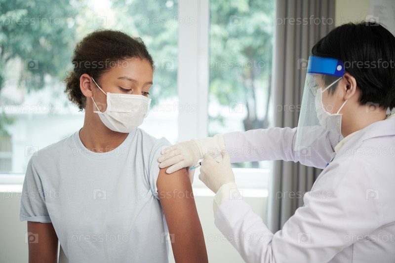 Молодая девушка получает прививки в больнице