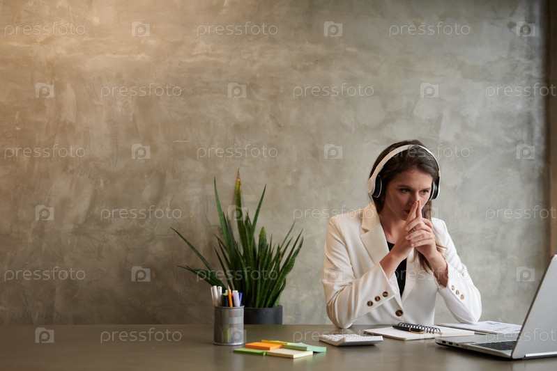 Деловая женщина читает отчет на ноутбуке