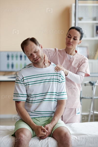 Терапевт осматривает боль в шее пациента