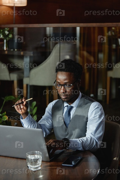 Бизнесмен, работающий онлайн на компьютере в кафе