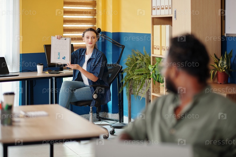 Деловая женщина показывает графики коллеге