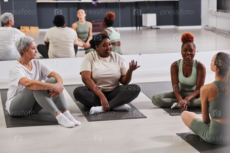 Женщины обсуждают тренировки с тренером