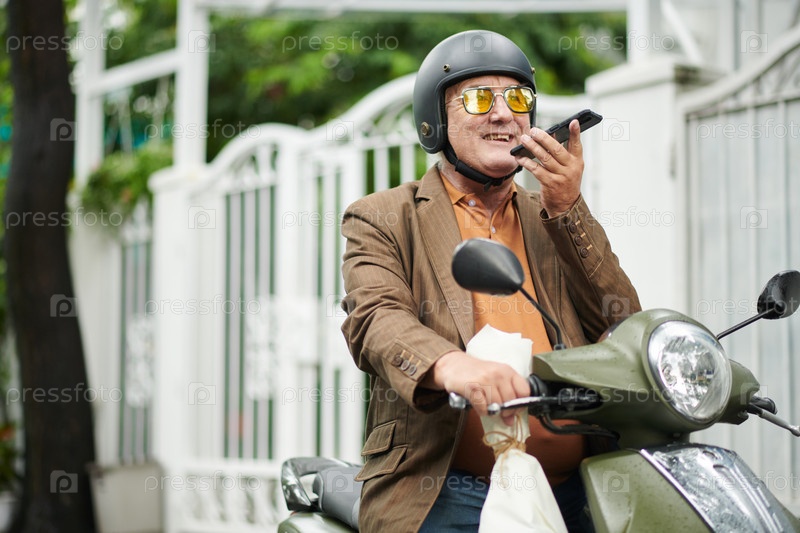 on Scooter Recording Voice Message Человек с записью голоса