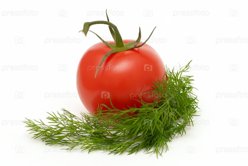 Помидор с укропом на белом фоне